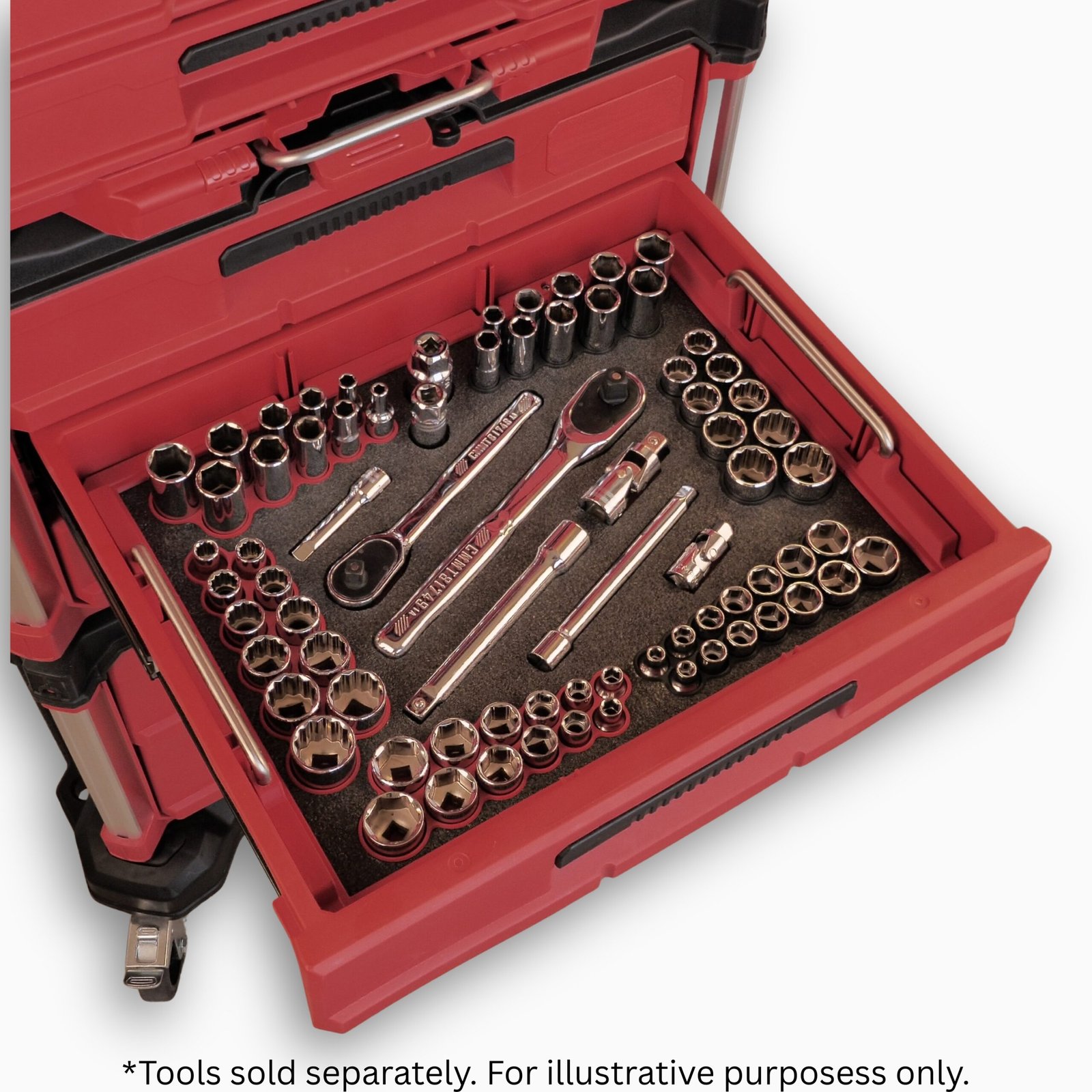 The Tülholt™ Socket & Driver Organization Tray is engineered for serious technicians who demand speed, durability, and perfect organization. Designed to drop seamlessly into Milwaukee Packout drawers, this tray also performs flawlessly as a standalone organizer in shop drawers, service carts, tool chests, and any workspace that requires fast access to your sockets and drivers.