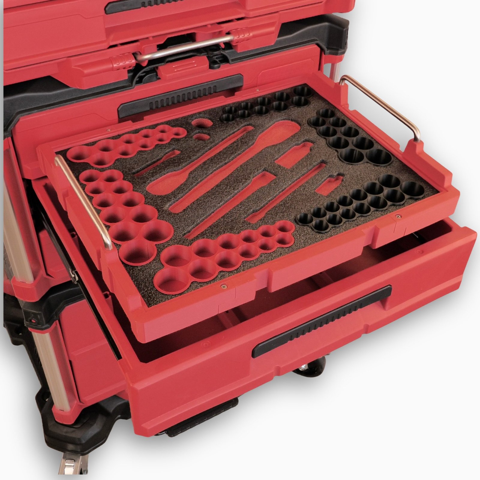 Made from premium high-density foam with a rugged polymer frame, each cutout is CNC-designed for an exact, glove-fit feel—keeping your tools locked in place whether you’re in the field or in the shop.
